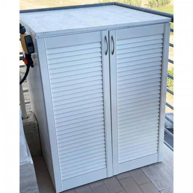 Antina in Legno Massiccio di Pino Veniciato Bianco RAL 9016 con struttura a Persiana Aperta (passaggio di luce ed aria tra le lamelle).