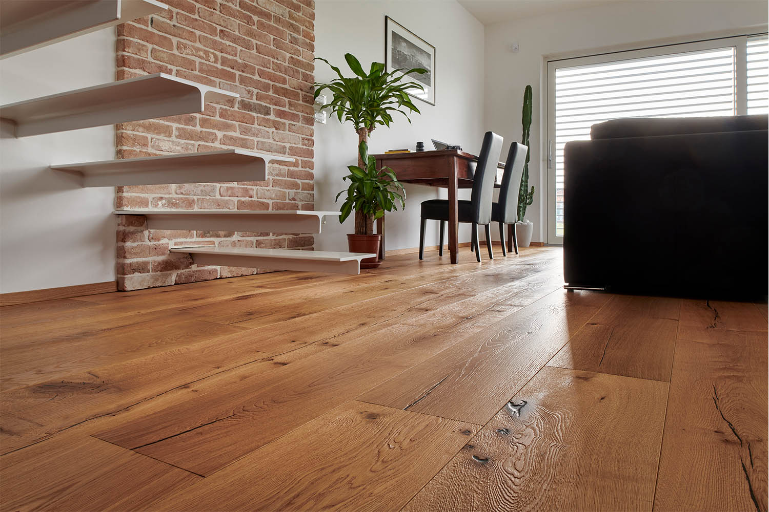 Collezione Corà parquet di maxi listoni lavorati artigianalmente, connotati da un sapore rustico di raffinata eleganza.