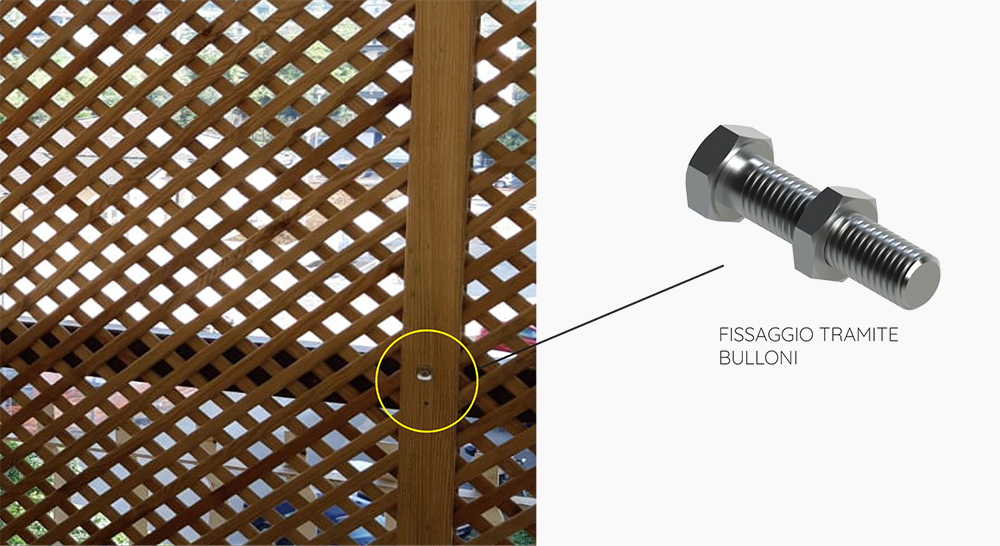- Steccati, grigliati e frangivista vanno SEMPRE fissati su entrambi i lati dei montanti.