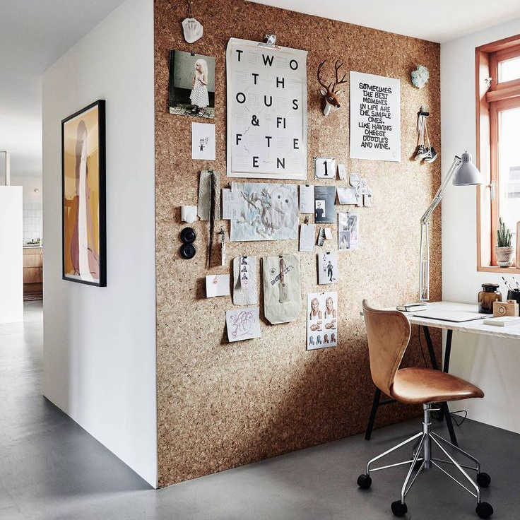 Non solo uno splendido elemento d’arredo: i pannelli in sughero, se utilizzati in ufficio, acquisiscono anche un’altra importante funzione. Possono infatti essere usati come bacheca per mettere in evidenza gli impegni, gli appunti e qualsiasi idea ci venga in mente, in modo che rimanga lì ben visibile ad attendere di essere colta nuovamente, nel momento migliore. Questo modello in foto dal colore chiaro va inoltre a integrarsi con l’ambiente pulito e lo stile moderno dell’ufficio in cui è inserito.